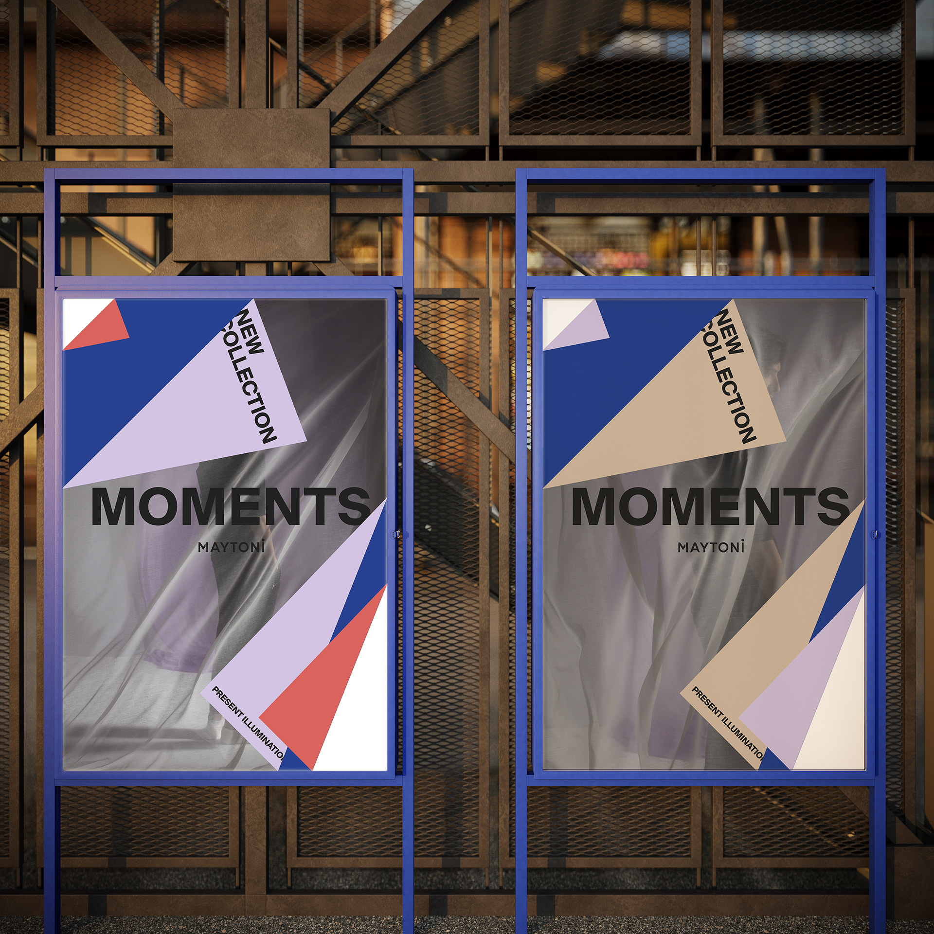 To celebrate Maytoni brand’s 10th anniversary, I developed a year-long advertising campaign called “Moments”. The ideas was to take the opportunity to “re-read” the most interesting “Moments” in the brand journey, a sort of imaginary book. The habit of folding the corner of a page when we wish to highlight an interesting passage in a printed book, folded corners became a metaphor for the new collection’s identity. I used strong typographies and photographs as layers to show the diversity of ideas behind product design. In doing so, I carefully considered every customer-related touchpoint with the brand: print communications, website, digital and physical signage, advertising. Our stand at the exhibition “Interlight” was the final part of the campaign.